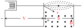 Figure shows an electron gun that emits electrons at very small angel with axis. The paraxial electrons emitted from the cathode (filament) are refocused at a distance s after accelerating through a potential difference V, s is given by (Take π2 = 10) :-