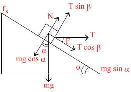 T cosβ + mg sin α = μs (mg cos α + T sin β)