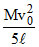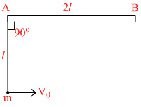 A uniform rod of mass m and length 2l lies on smooth horizontal surface. A particle of same mass m is connected to string of length l, whose other end is connected to rod. Initially string is taut and both rod and string lies in same horizontal plane with 90o angle between them. If particle is given initially velocity v0 perpendicular to string, then just after giving velocity v0 to particle :-