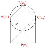 is purely imaginary number. A square on side AC is drawn outwardly. If P(z4) is the centre of square, then-