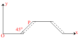 The figure shows a taut string, initially aligned with the x-axis, which carries a waveform travelling towards the right without any change in its shape. The bold line and the dotted line indicate the displacement of the string (i.e., shape of the waveform) at time = t second and at time = (t + dt) second, respectively. The speed of particle at point P at t = 2 sec is 1 cm/s. Choose the CORRECT statement(s) from the following (assume that dt is positive) : -