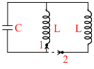 A capacitor with charge Q on it is connected to an inductor L as shown in diagram at t = 0. When the switch is flipped from position 1 to 2, the current in the circuit is observed to be at half of its maximum value. Then : -