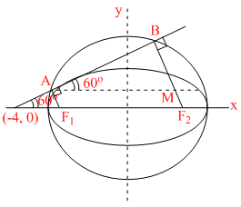 = 1 (a > b) which makes 60o with x-axis. If this tangent intersects its auxiliary circle at points A & B such that AB = 2b, then -
